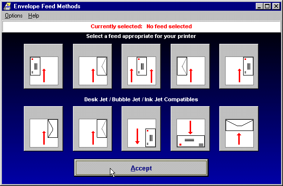 important contacts. Easy Mail Plus Editor: Includes those features expected in a comprehensive editor, and much more, including full graphics support. Documents can be printed, faxed, individually or emailed to all of a selected list of addresses. Selecting Envelope Feed Method: As is common throughout Easy Mail Plus, selecting the way in which envelopes feed into your printer is as easy as clicking a picture of the way it is done on yours.